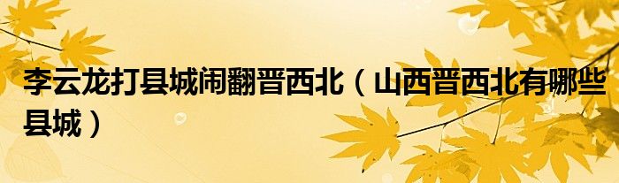 大家好,小安來為大家講解下。李云龍打縣城鬧翻晉西北,山西晉西北有哪些縣城很多人還不知道,現在讓我們一起來看看吧!