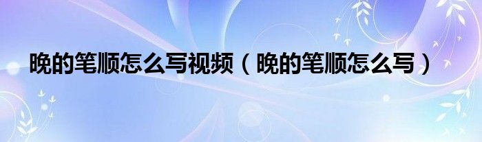 大家好,小安來為大家講解下。晚的筆順怎么寫視頻,晚的筆順怎么寫很多人還不知道,現在讓我們一起來看看吧!