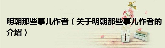 大家好,小安來為大家解答以上的問題。明朝那些事兒作者,關(guān)于明朝那些事兒作者的介紹很多人還不知道,現(xiàn)在讓我們一起來看看吧!
