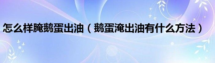 大家好,小安來為大家講解下。怎么樣腌鵝蛋出油,鵝蛋淹出油有什么方法很多人還不知道,現在讓我們一起來看看吧!