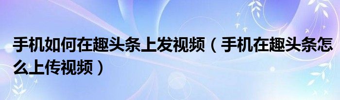 大家好,小安來為大家講解下。手機如何在趣頭條上發視頻,手機在趣頭條怎么上傳視頻很多人還不知道,現在讓我們一起來看看吧!