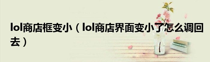 大家好,小安來為大家講解下。lol商店框變小,lol商店界面變小了怎么調回去很多人還不知道,現在讓我們一起來看看吧!