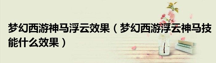 大家好,小安來為大家講解下。夢幻西游神馬浮云效果,夢幻西游浮云神馬技能什么效果很多人還不知道,現在讓我們一起來看看吧!