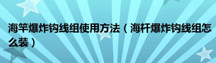 大家好,小安來為大家講解下。海竿爆炸鉤線組使用方法,海桿爆炸鉤線組怎么裝很多人還不知道,現在讓我們一起來看看吧!