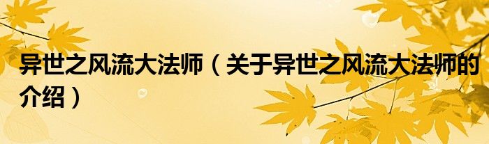 大家好,小安來為大家解答以上的問題。異世之風流大法師,關于異世之風流大法師的介紹很多人還不知道,現在讓我們一起來看看吧!