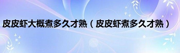 大家好,小安來為大家講解下。皮皮蝦大概煮多久才熟,皮皮蝦煮多久才熟很多人還不知道,現(xiàn)在讓我們一起來看看吧!