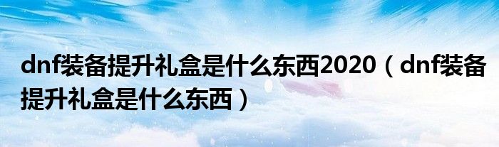 大家好,小安來為大家講解下。dnf裝備提升禮盒是什么東西2020,dnf裝備提升禮盒是什么東西很多人還不知道,現(xiàn)在讓我們一起來看看吧!