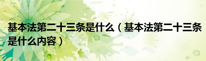 大家好,小安來為大家講解下。基本法第二十三條是什么,基本法第二十三條是什么內容很多人還不知道,現在讓我們一起來看看吧!