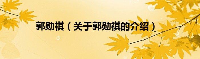 大家好,小安來為大家解答以上的問題。郭勛祺,關于郭勛祺的介紹很多人還不知道,現在讓我們一起來看看吧!