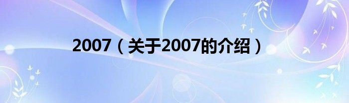大家好,小安來為大家解答以上的問題。2007,關(guān)于2007的介紹很多人還不知道,現(xiàn)在讓我們一起來看看吧!