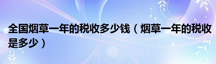 大家好,小安來為大家講解下。全國煙草一年的稅收多少錢,煙草一年的稅收是多少很多人還不知道,現在讓我們一起來看看吧!