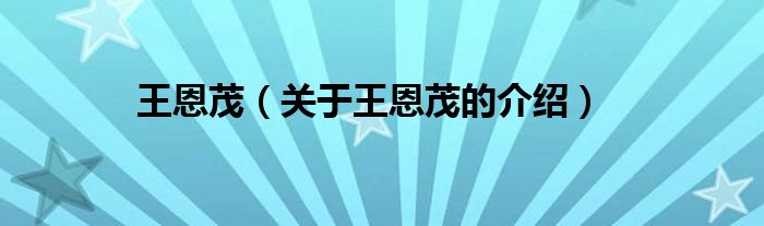 大家好,小安來為大家解答以上的問題。王恩茂,關于王恩茂的介紹很多人還不知道,現在讓我們一起來看看吧!