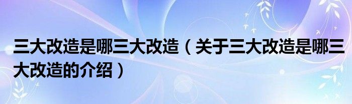 大家好,小安來為大家解答以上的問題。三大改造是哪三大改造,關于三大改造是哪三大改造的介紹很多人還不知道,現在讓我們一起來看看吧!