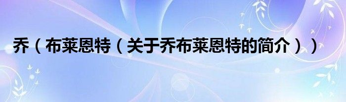 大家好,喬 布萊恩特,關于喬 布萊恩特的簡介很多人還不知道,現在讓我們一起來看看吧!