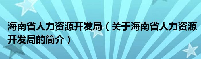 本文關于海南省人力資源開發局的簡介就講解完畢,希望對大家有所幫助。