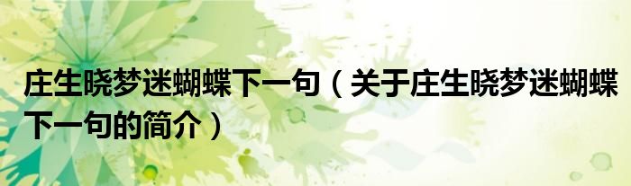 本文關(guān)于莊生曉夢(mèng)迷蝴蝶下一句的簡(jiǎn)介就講解完畢,希望對(duì)大家有所幫助。