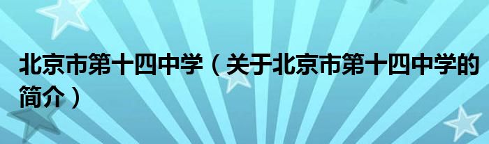 本文關于北京市第十四中學的簡介就講解完畢,希望對大家有所幫助。