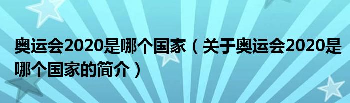 本文關于奧運會2020是哪個國家的簡介就講解完畢,希望對大家有所幫助。
