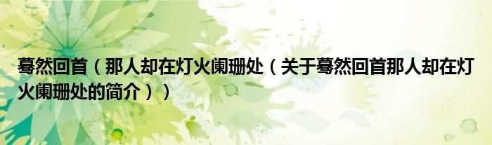 本文關于驀然回首 那人卻在燈火闌珊處的簡介就講解完畢,希望對大家有所幫助。