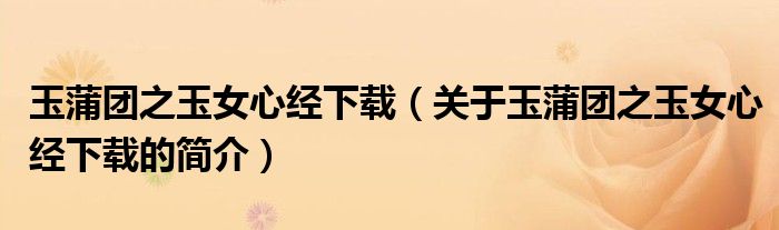本文關于玉蒲團之玉女心經下載的簡介就講解完畢,希望對大家有所幫助。