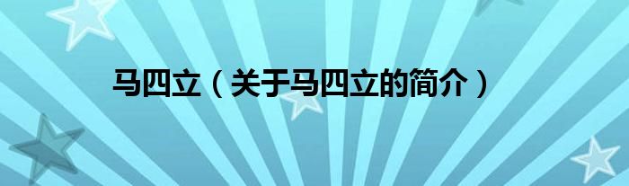 本文關(guān)于馬四立的簡介就講解完畢,希望對大家有所幫助。