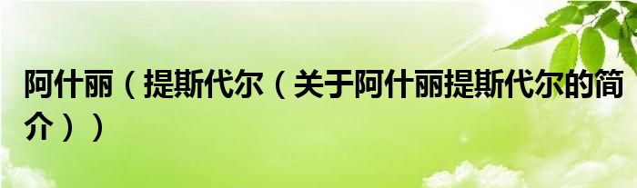 大家好,阿什麗 提斯代爾,關于阿什麗 提斯代爾的簡介很多人還不知道,現(xiàn)在讓我們一起來看看吧!