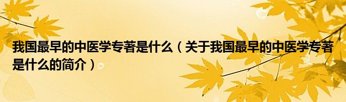 本文關于我國最早的中醫學專著是什么的簡介就講解完畢,希望對大家有所幫助。