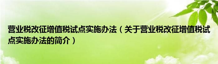 本文關(guān)于營(yíng)業(yè)稅改征增值稅試點(diǎn)實(shí)施辦法的簡(jiǎn)介就講解完畢,希望對(duì)大家有所幫助。