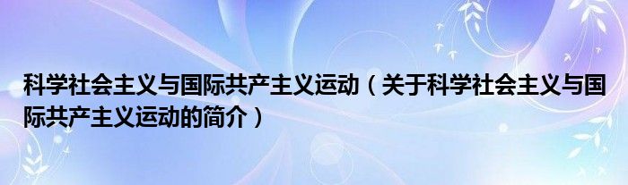 本文關于科學社會主義與國際共產主義運動的簡介就講解完畢,希望對大家有所幫助。