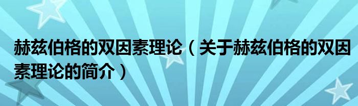 大家好,赫茲伯格的雙因素理論,關(guān)于赫茲伯格的雙因素理論的簡介很多人還不知道,現(xiàn)在讓我們一起來看看吧!