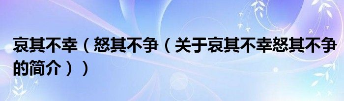 本文關(guān)于哀其不幸 怒其不爭(zhēng)的簡(jiǎn)介就講解完畢,希望對(duì)大家有所幫助。