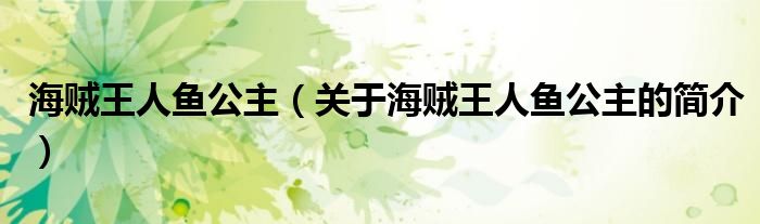 本文關(guān)于海賊王人魚公主的簡(jiǎn)介就講解完畢,希望對(duì)大家有所幫助。
