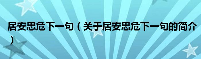 本文關于居安思危下一句的簡介就講解完畢,希望對大家有所幫助。