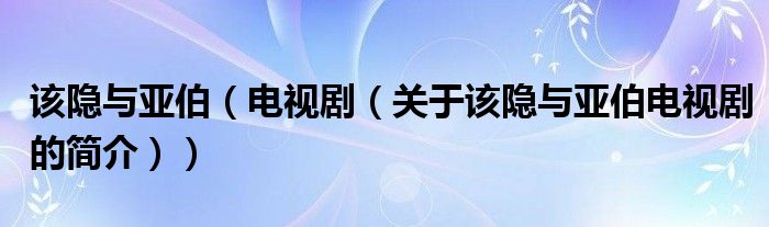 本文關于該隱與亞伯 電視劇的簡介就講解完畢,希望對大家有所幫助。