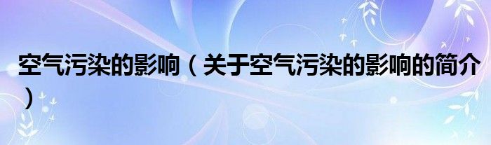 本文關(guān)于空氣污染的影響的簡介就講解完畢,希望對(duì)大家有所幫助。