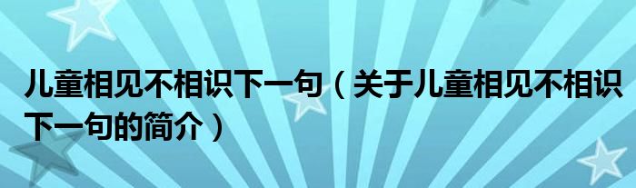 本文關于兒童相見不相識下一句的簡介就講解完畢,希望對大家有所幫助。