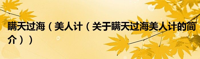 大家好,瞞天過海 美人計,關于瞞天過海 美人計的簡介很多人還不知道,現在讓我們一起來看看吧!