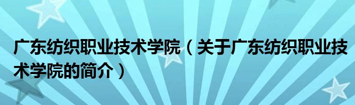 本文關于廣東紡織職業技術學院的簡介就講解完畢,希望對大家有所幫助。