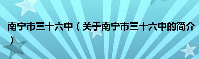 本文關于南寧市三十六中的簡介就講解完畢,希望對大家有所幫助。