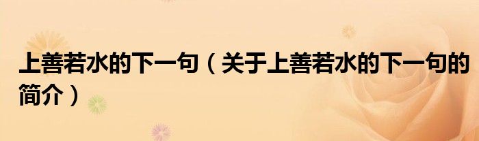 本文關于上善若水的下一句的簡介就講解完畢,希望對大家有所幫助。
