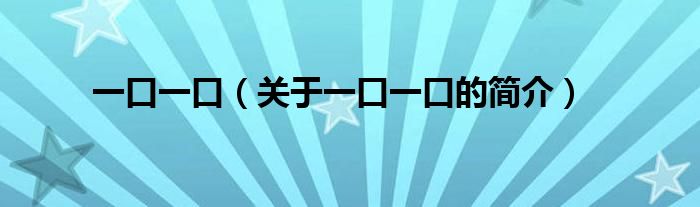 大家好,一口一口,關于一口一口的簡介很多人還不知道,現在讓我們一起來看看吧!