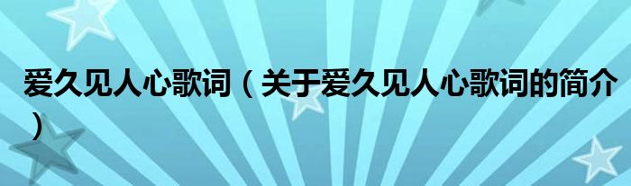 本文關(guān)于愛久見人心歌詞的簡(jiǎn)介就講解完畢,希望對(duì)大家有所幫助。