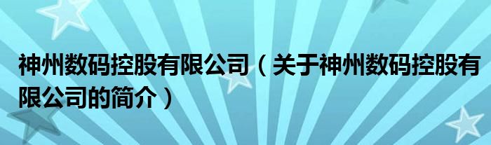 大家好,神州數碼控股有限公司,關于神州數碼控股有限公司的簡介很多人還不知道,現在讓我們一起來看看吧!