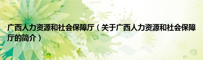 大家好,廣西人力資源和社會保障廳,關于廣西人力資源和社會保障廳的簡介很多人還不知道,現在讓我們一起來看看吧!