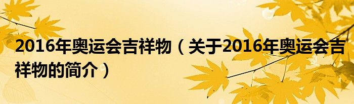 本文關于2016年奧運會吉祥物的簡介就講解完畢,希望對大家有所幫助。