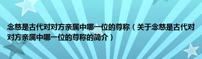 本文關于念慈是古代對對方親屬中哪一位的尊稱的簡介就講解完畢,希望對大家有所幫助。