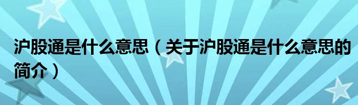 本文關于滬股通是什么意思的簡介就講解完畢,希望對大家有所幫助。