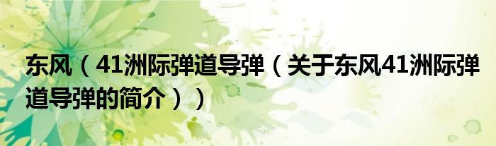 本文關于東風 41洲際彈道導彈的簡介就講解完畢,希望對大家有所幫助。