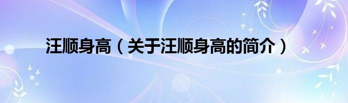 本文關(guān)于汪順身高的簡介就講解完畢,希望對大家有所幫助。