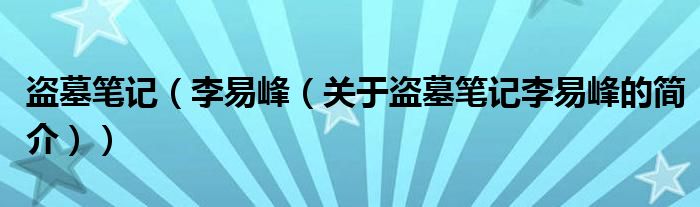 本文關(guān)于盜墓筆記 李易峰的簡(jiǎn)介就講解完畢,希望對(duì)大家有所幫助。
